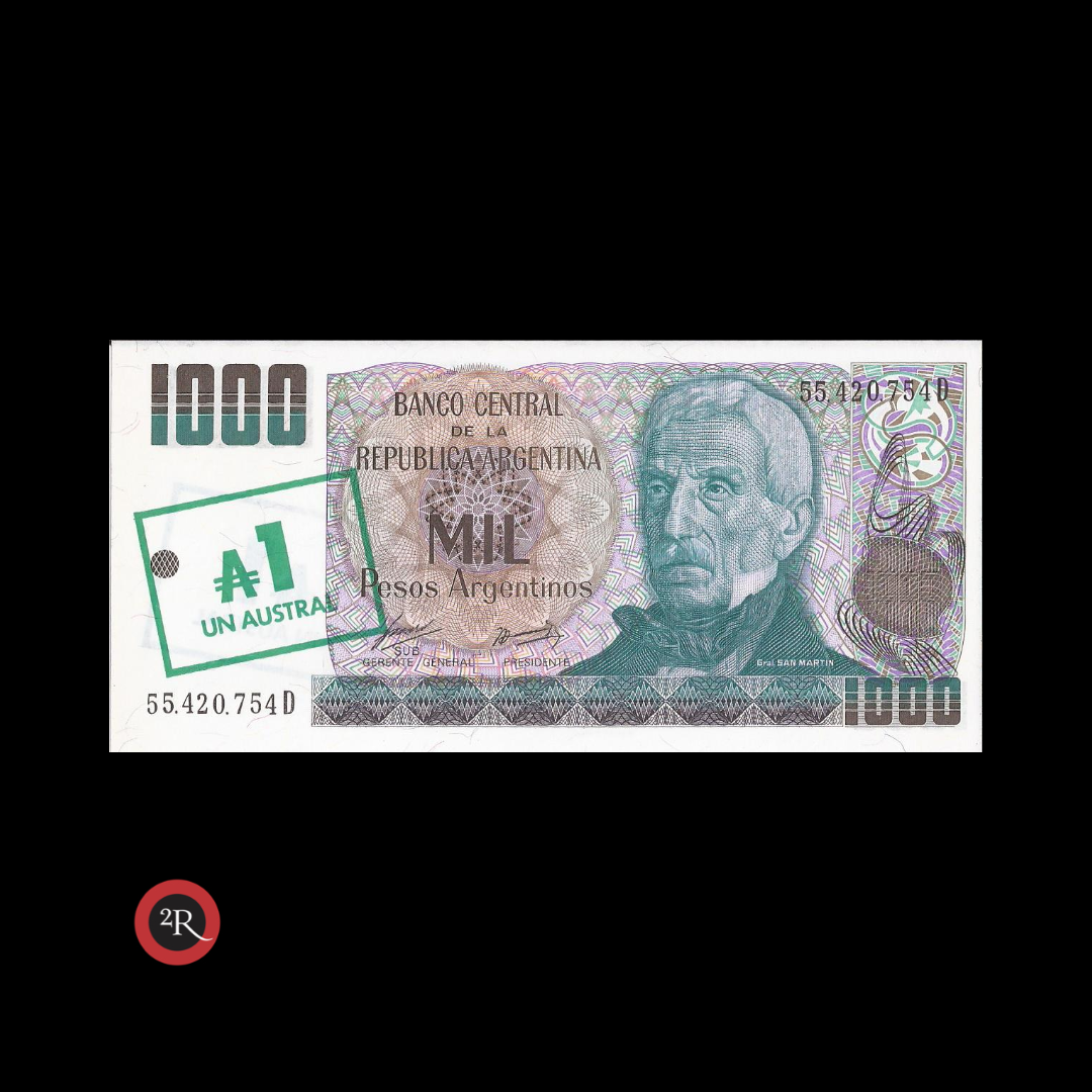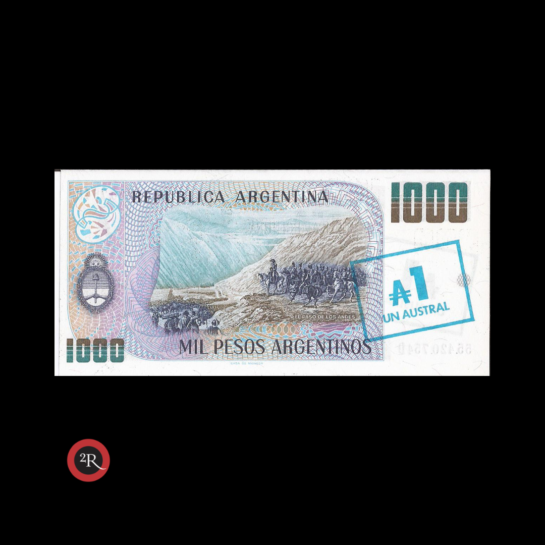 VALOR: 1 AUSTRAL SOBRE BILLETE DE 1000 PESOS ARGENTINOS