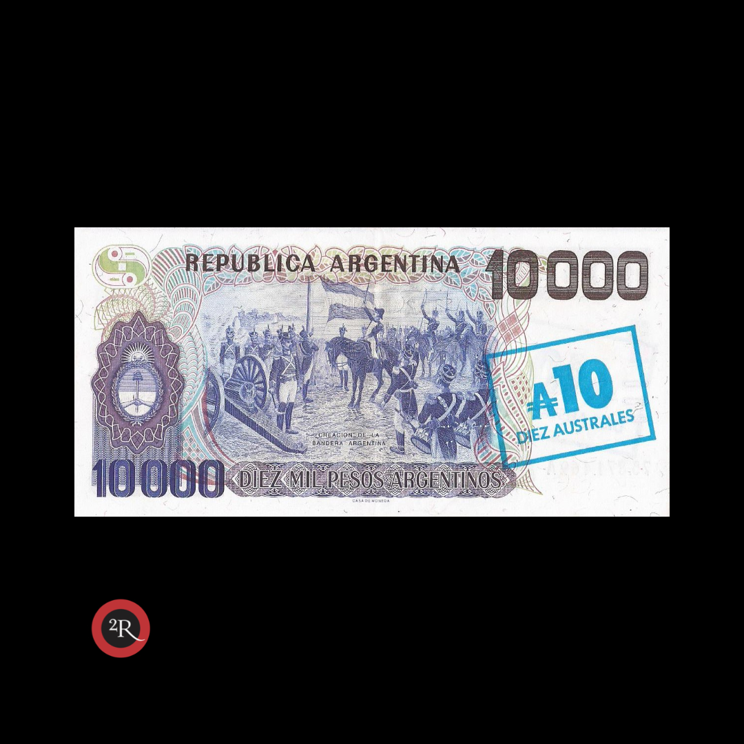 VALOR: 10 AUSTRALES SOBRE BILLETE DE 10.000 PESOS ARGENTINOS