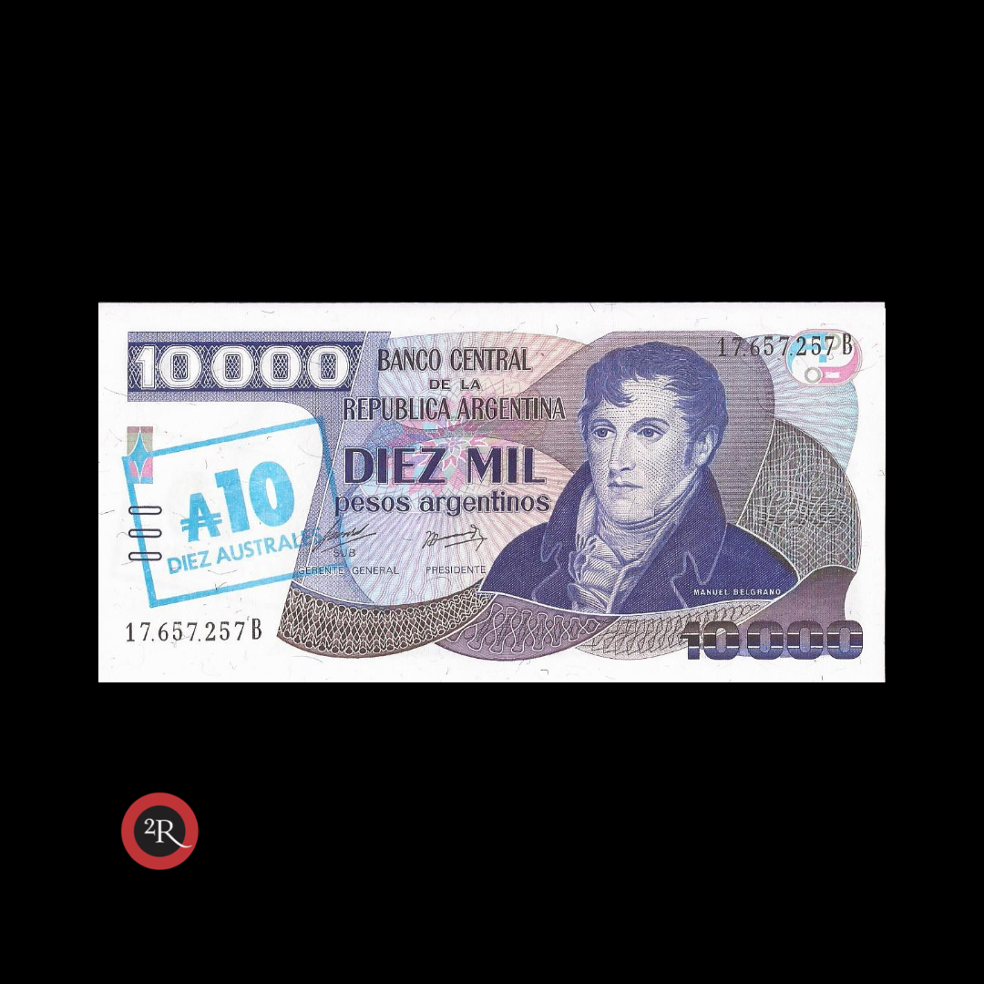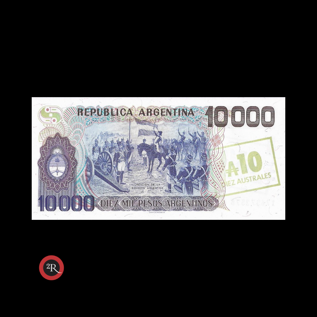 VALOR: 10 AUSTRALES SOBRE BILLETE DE 10.000 PESOS ARGENTINOS