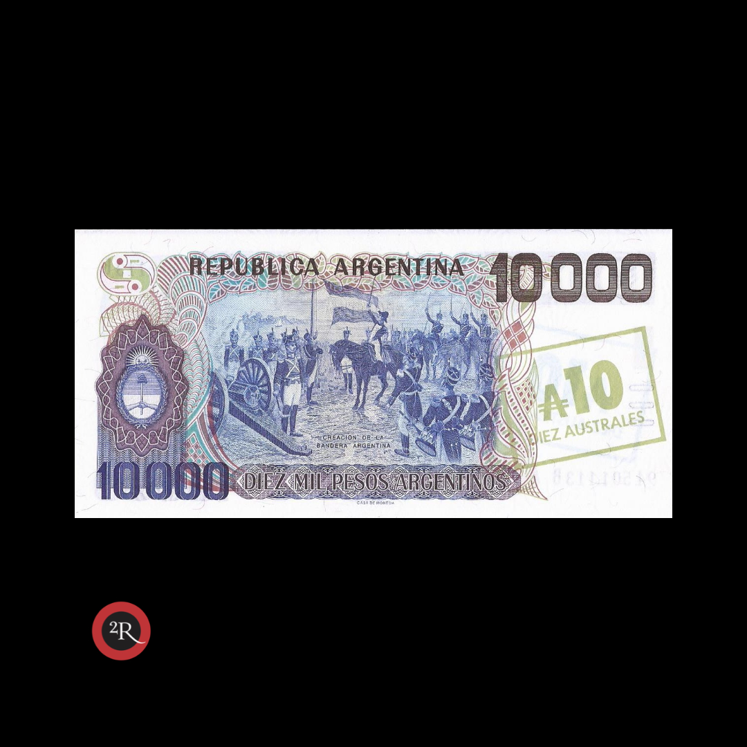 VALOR: 10 AUSTRALES SOBRE BILLETE DE 10.000 PESOS ARGENTINOS