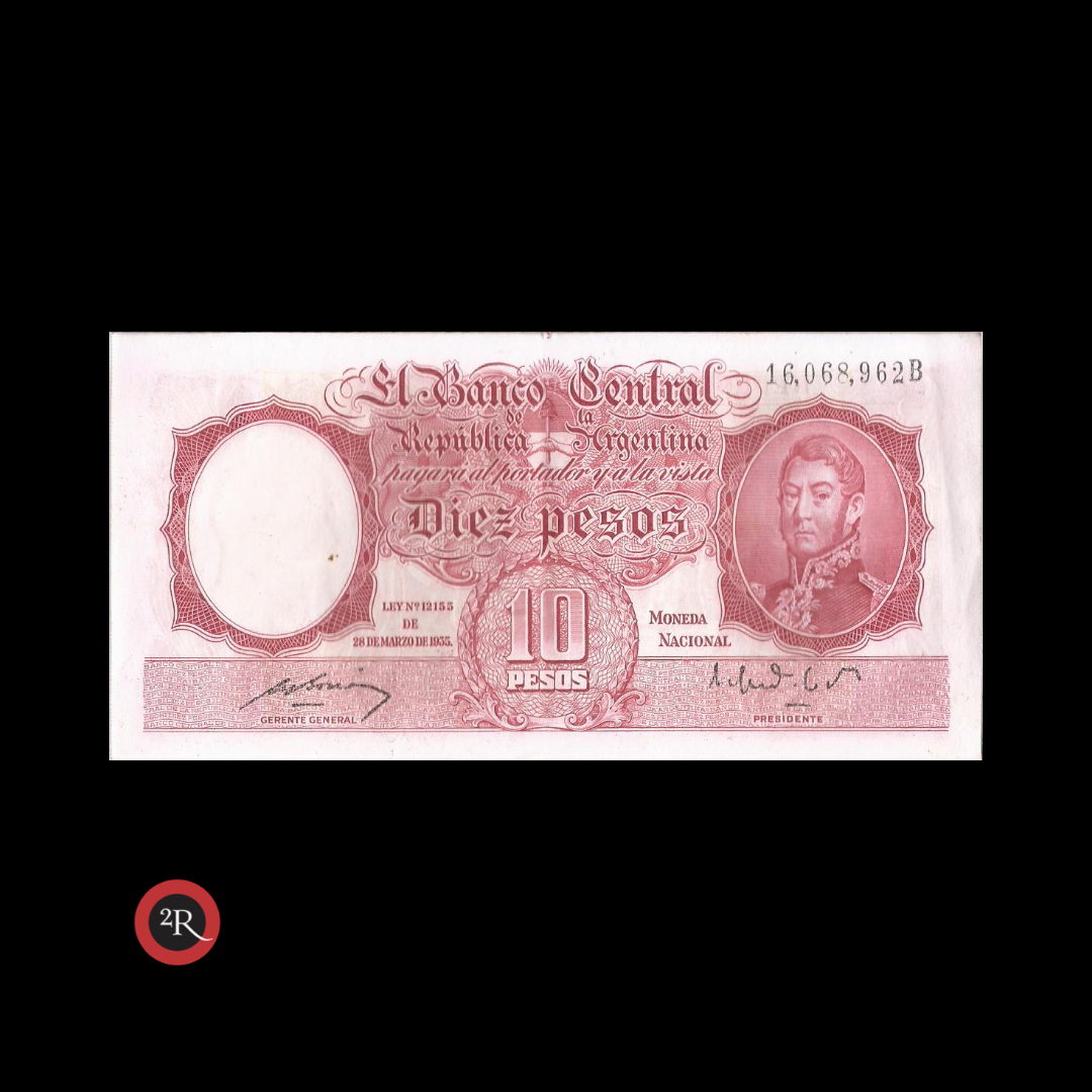ARGENTINA 10 PESOS 1950 BOT#1940 COL#455c