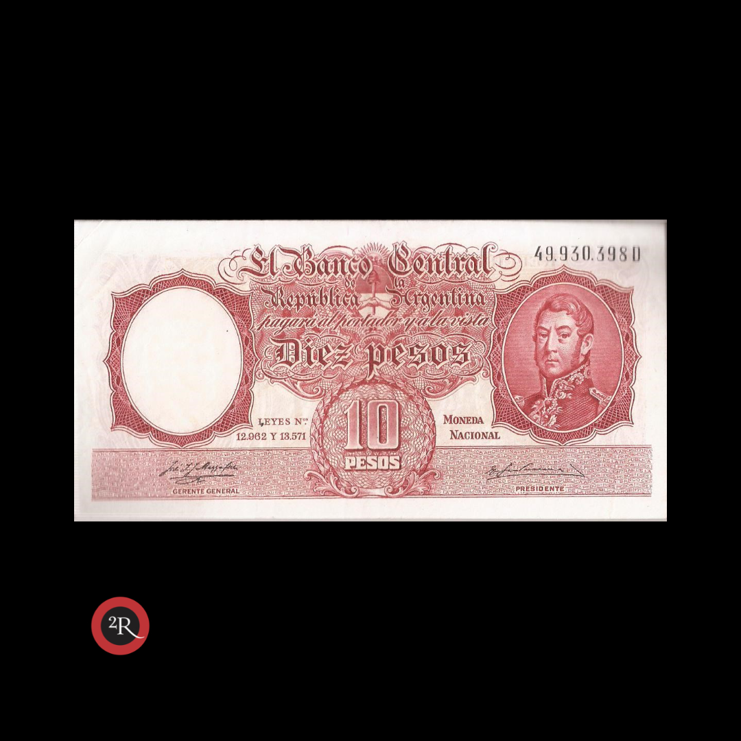 ARGENTINA 10 PESOS 1956 BOT#1956 COL#461a