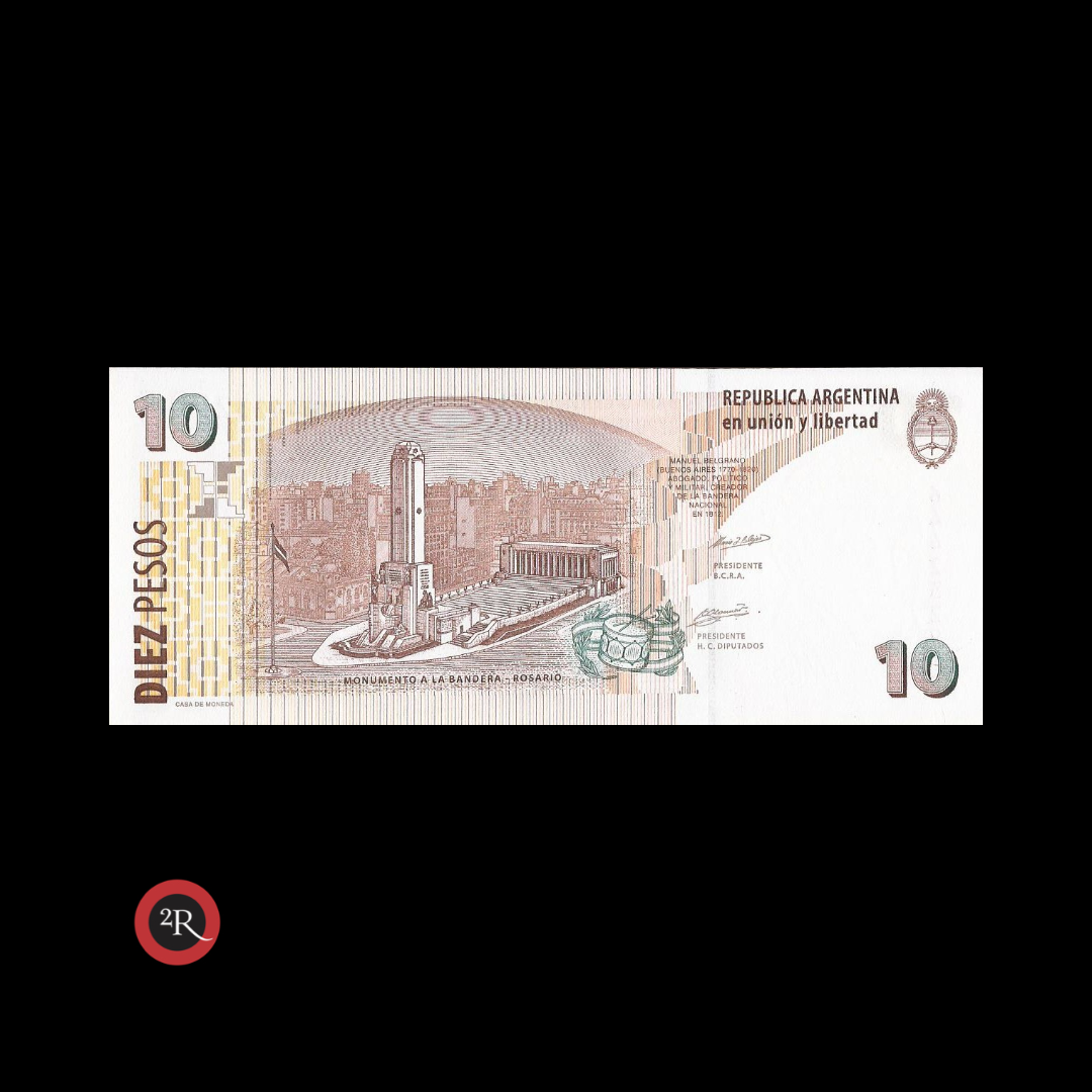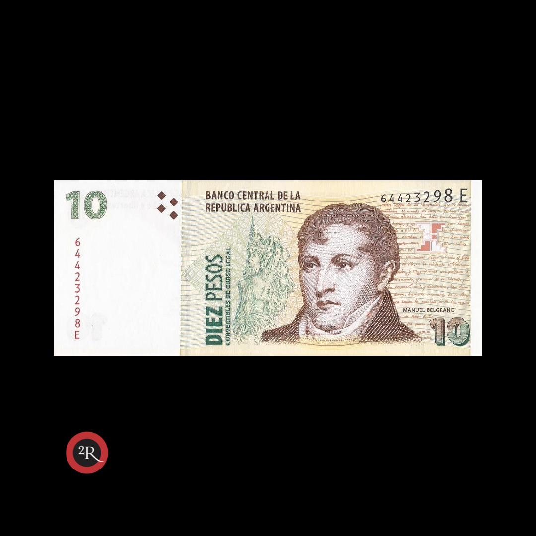ARGENTINA 10 PESOS 2002 CONVERTIBLES 2º DISEÑO CON LEYENDA BOT#3413 COL#775a