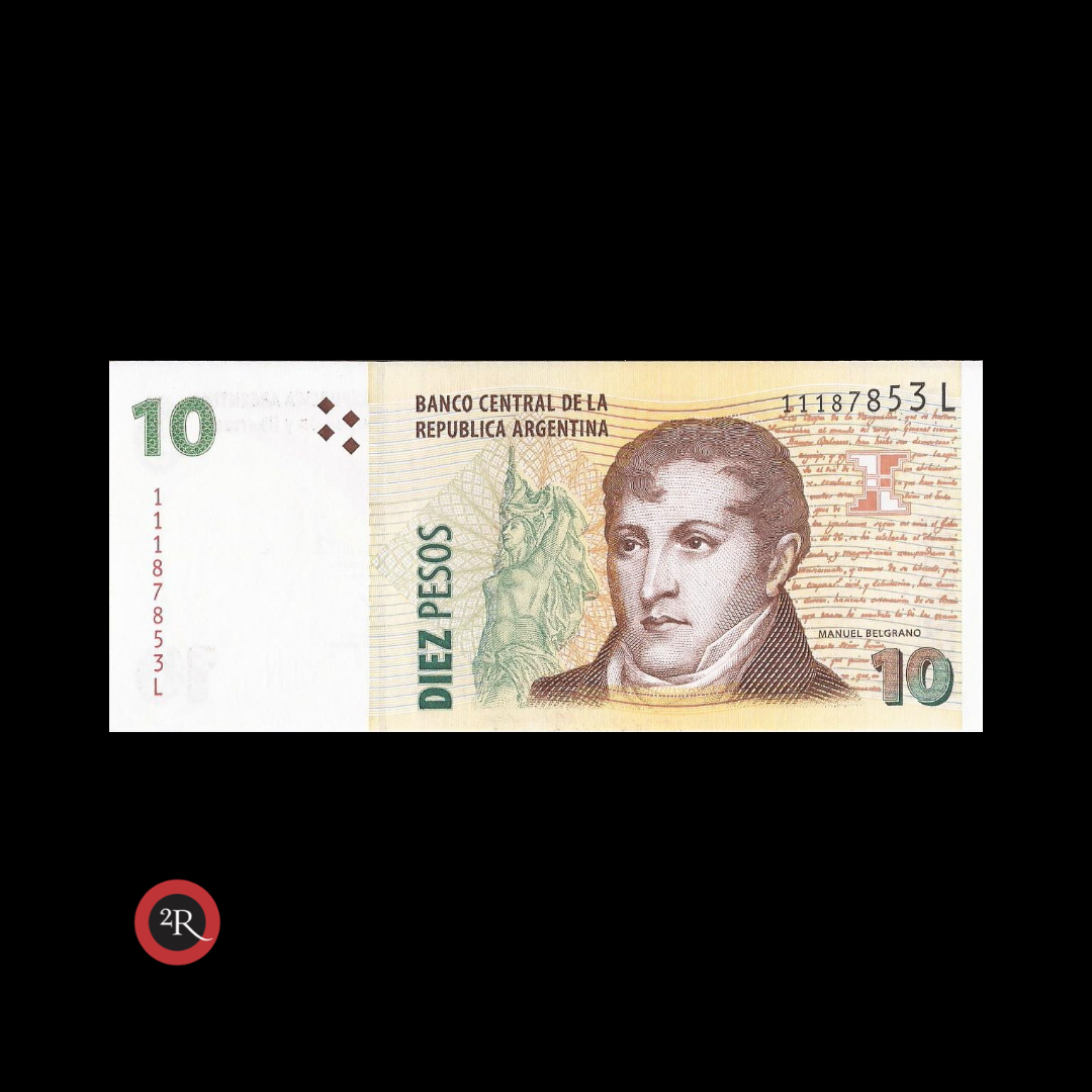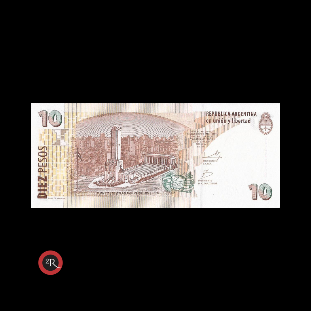 ARGENTINA 10 PESOS 2010 CONVERTIBLES 2° DISEÑO SIN LEYENDA BOT#3435 COL#780a