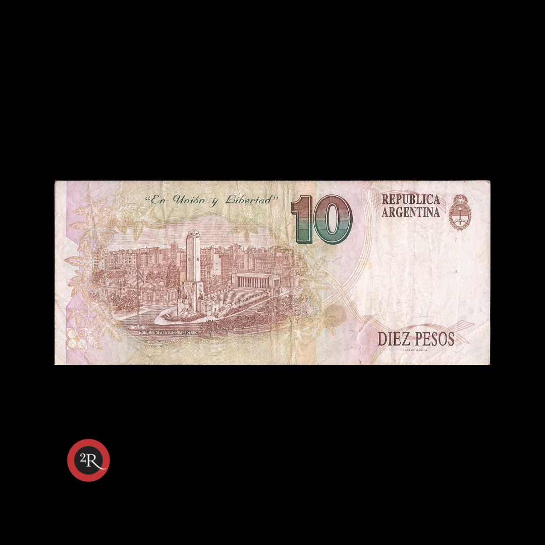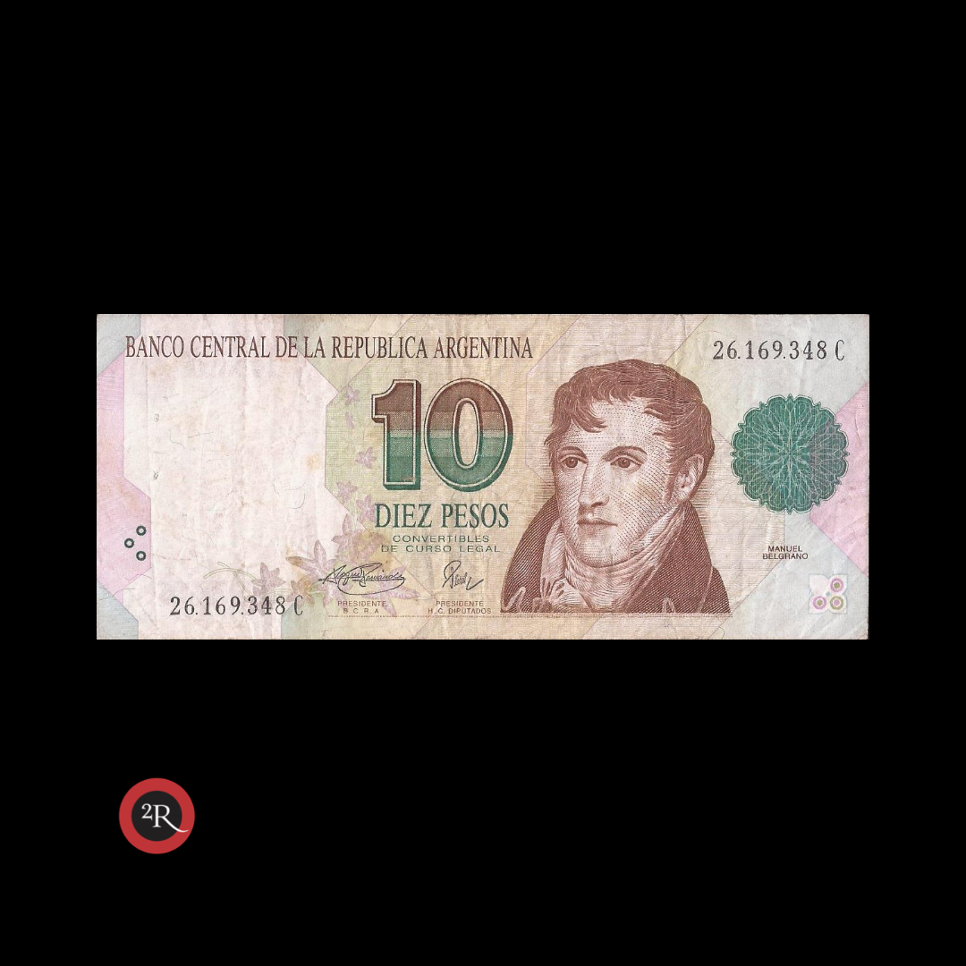 ARGENTINA 10 PESOS CONVERTIBLES 1° DISEÑO BOT#3043 COL#743b