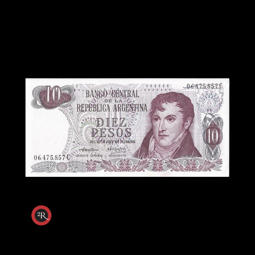 ARGENTINA 10 PESOS LEY 18188 1973 BOT#2350 COL#617a