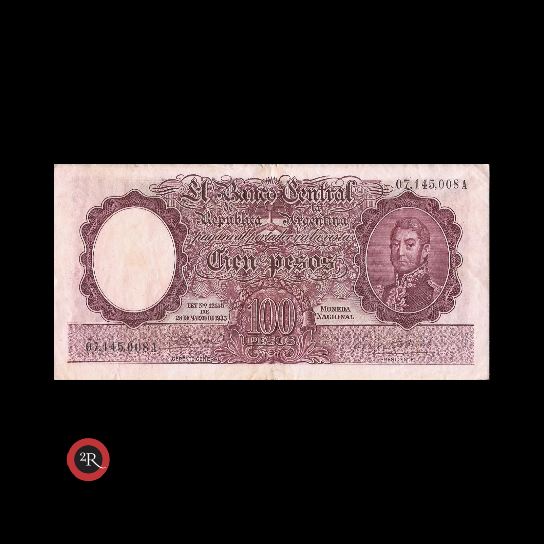 ARGENTINA 100 PESOS 1945 BOT#2032 COL#487c