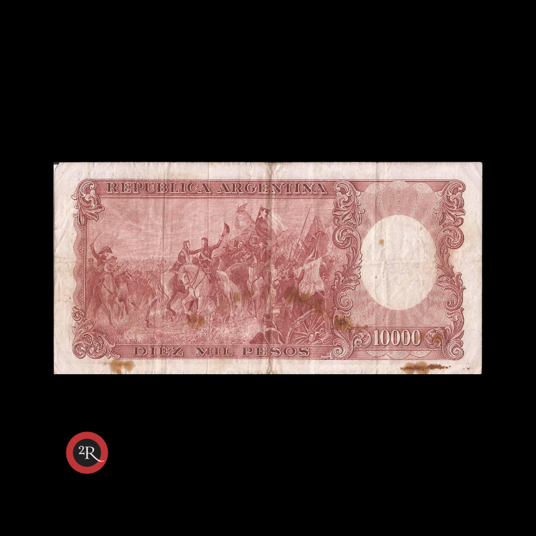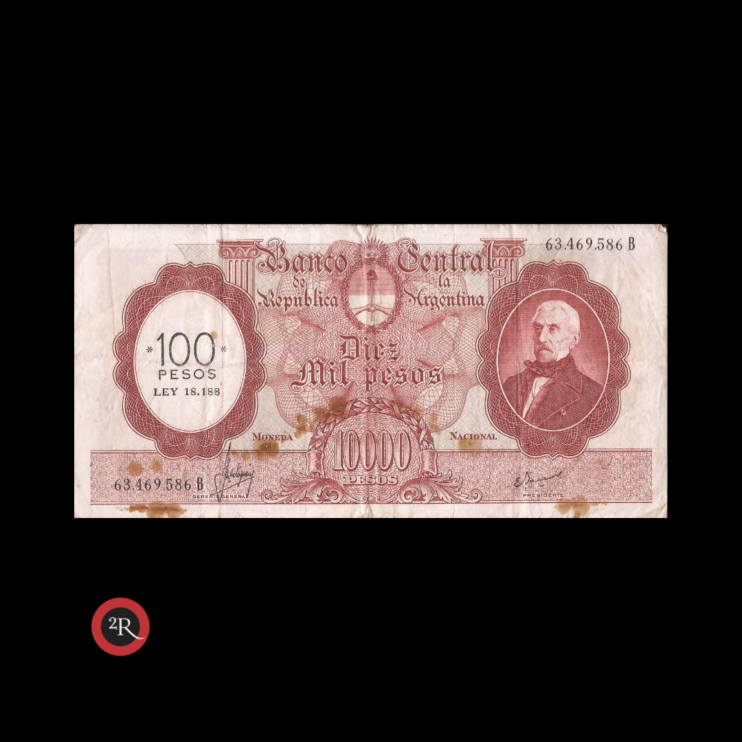 ARGENTINA 10000 PESOS MONEDA NACIONAL RESELLADO A 100 PESOS LEY 18188 1970 BOT#2222 COL# 557a