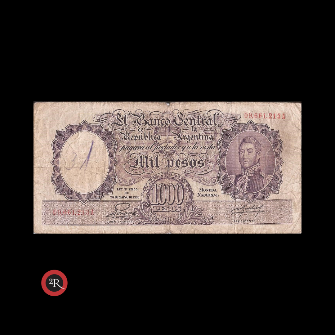 ARGENTINA 1000 PESOS 1952 BOT#2134 COL#527a