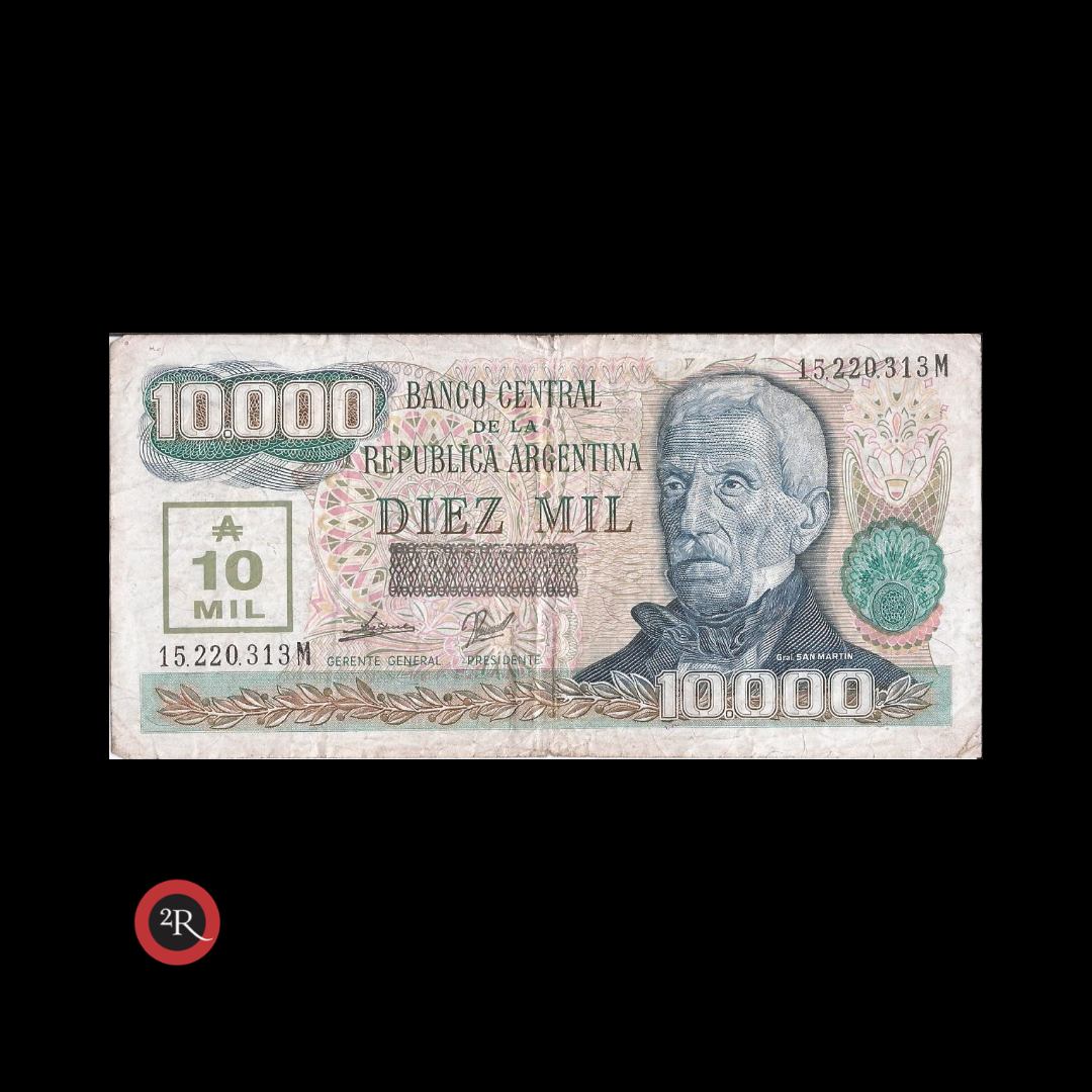VALOR: 10.000 AUSTRALES SOBRE BILLETE DE 10.000 PESOS DE SAN MARTIN