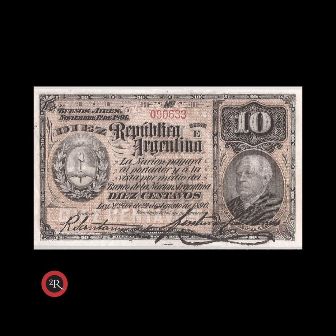 ARGENTINA 1893 10 CENTAVOS BOT#1013 COL#024 CAJA CONVERSION (FRACCIONARIOS)