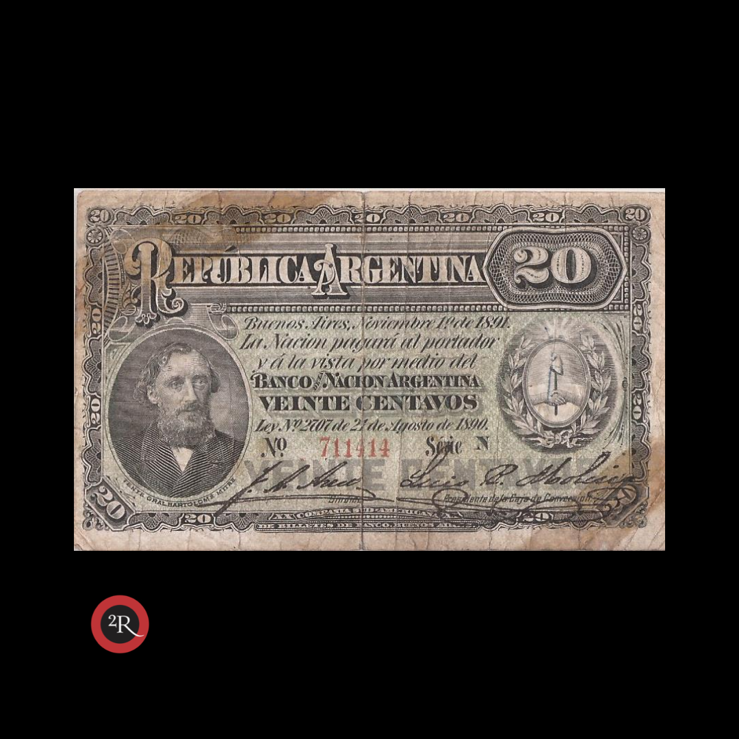 ARGENTINA 1894 20 CENTAVOS BOT#1025 COL#032 CAJA DE CONVERSION (FRACCIONARIOS)