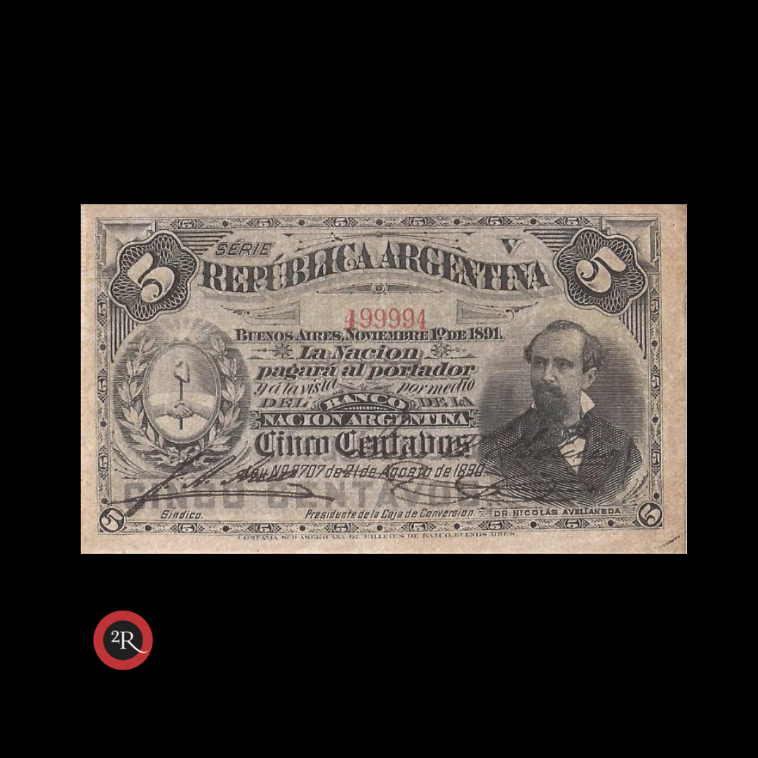 ARGENTINA 1895 (1891) 5 CENTAVOS CAJA DE CONVERSION (FRACCIONARIOS) COL#021b