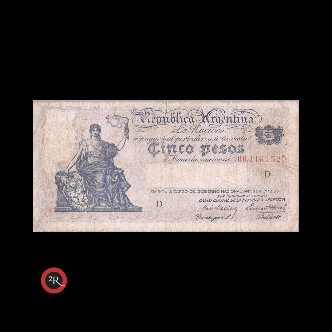 ARGENTINA 5 PESOS 1935 (PROGRESO) BOT#1844 COL#420a