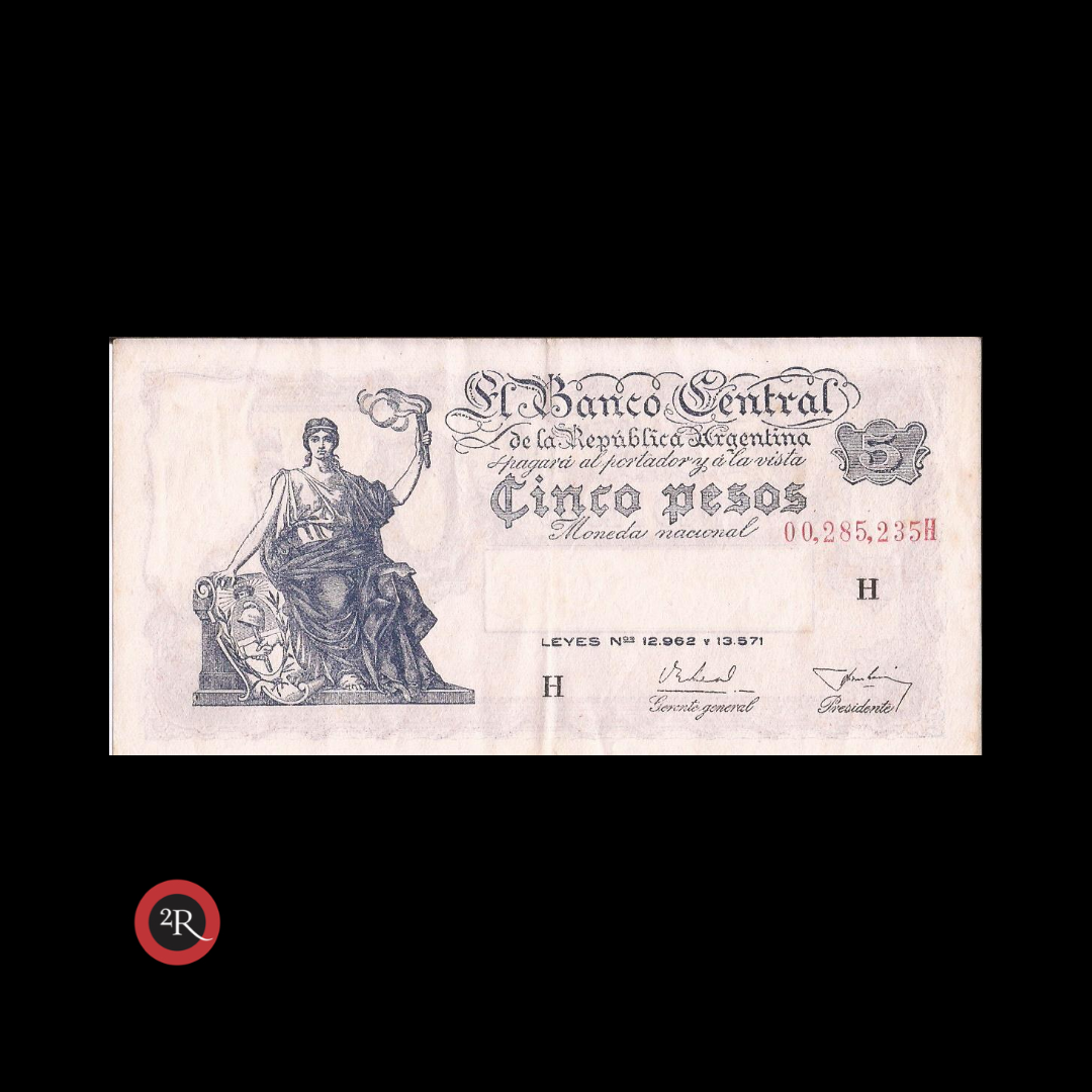 ARGENTINA 5 PESOS 1956 (PROGRESO) BOT#1870 COL# 429b