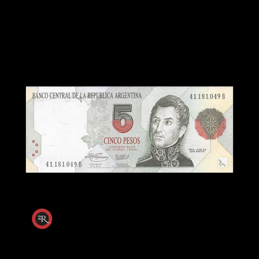 ARGENTINA 5 PESOS CONVERTIBLES 1° DISEÑO 1995 BOT#3030 COL#740e