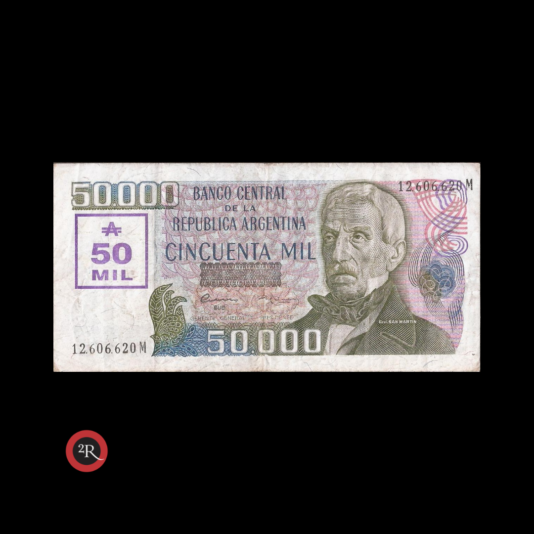 VALOR: 50.000 AUSTRALES SOBRE BILLETE DE 50.000 PESOS SAN MARTIN