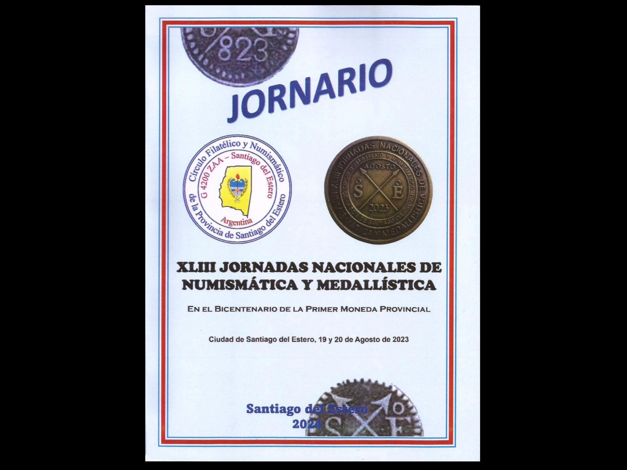 Publicación de 167 páginas correspondiente a las actas de las XLIII Jornadas Nacionales de Numismática y Medallística, realizadas en 2024 en Santiago del Estero, Argentina.